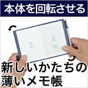 どこにでもあるA4コピー用紙を折り畳んで、挟むだけで7ページの薄いメモ帳の出来上がります。「本体を回転させる」今までにないギミックで、楽しく、便利に使えるメモ帳です。